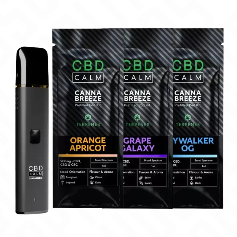 The 900mg CBD Calm Cannabreeze Prefilled Vape Kit delivers a smooth, relaxing experience designed to help you unwind and restore balance. Formulated with premium broad-spectrum CBD, each puff provides a carefully blended mix of cannabinoids — including CBD, CBG and CBC — with no nicotine and virtually no THC.