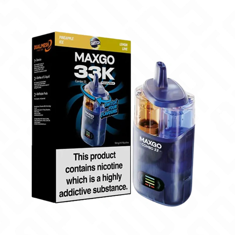 The 18mg Relx Maxgo 33K Prefilled Pod Vape Kit offers a high-capacity vaping solution with an impressive puff count of up to 33,000 per device. Its innovative design features a dual-flavour system, allowing you to switch between two distinct e-liquid flavours instantly by simply twisting the mouthpiece, providing a refreshing and varied experience every session. The kit utilises dual mesh coil technology and a robust 1.0ohm coil for rich taste and consistent vapour production with every draw, while its leak-proof construction and visible dual juice tanks ensure a mess-free, hassle-free operation and easy liquid monitoring.